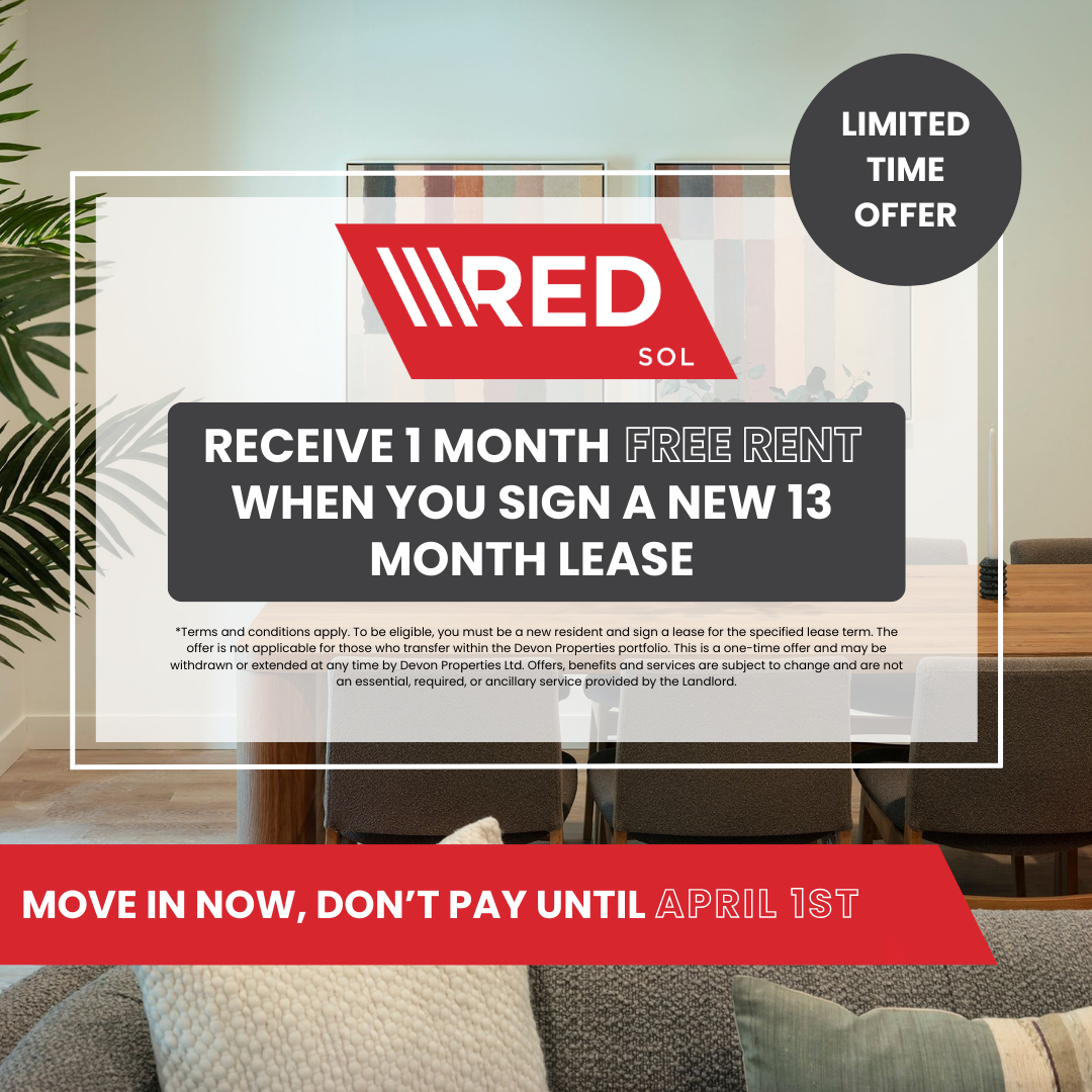 Red Sol Apartments offers attractive community amenities for residents to enjoy. These include a fitness centre, outdoor courtyard, residents’ lounge & amenity room, controlled security access, rooftop amenity space with community garden plots, storage lockers, and underground parking.